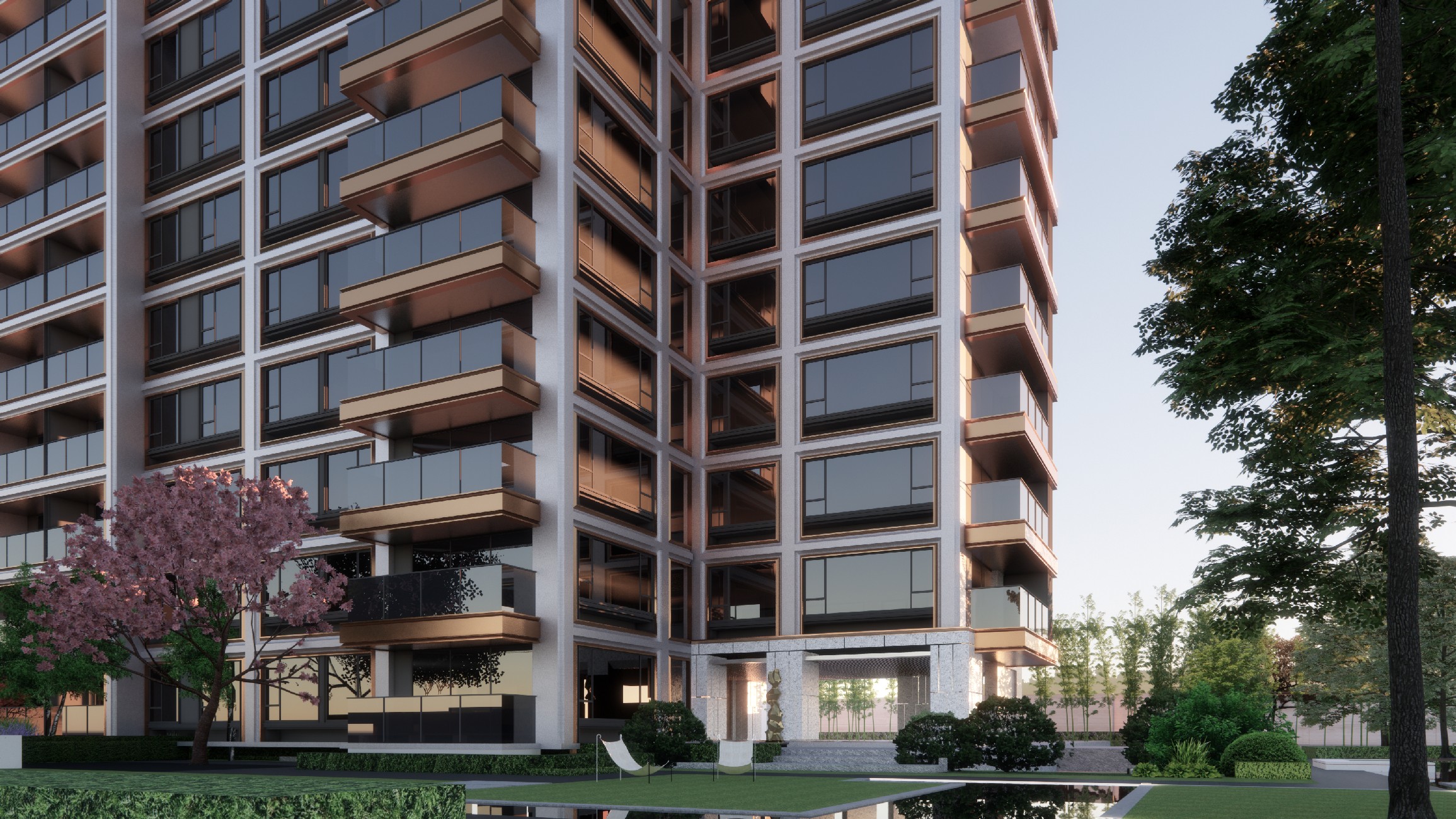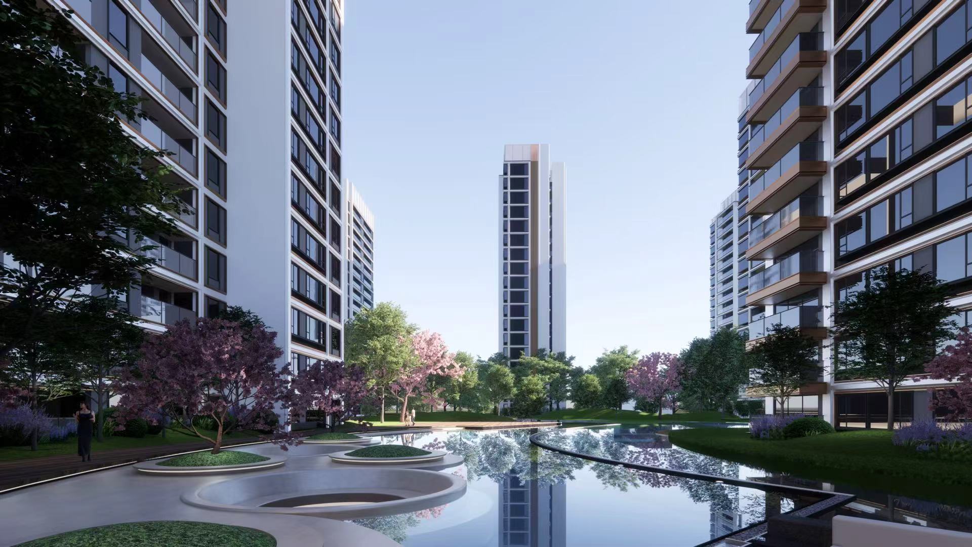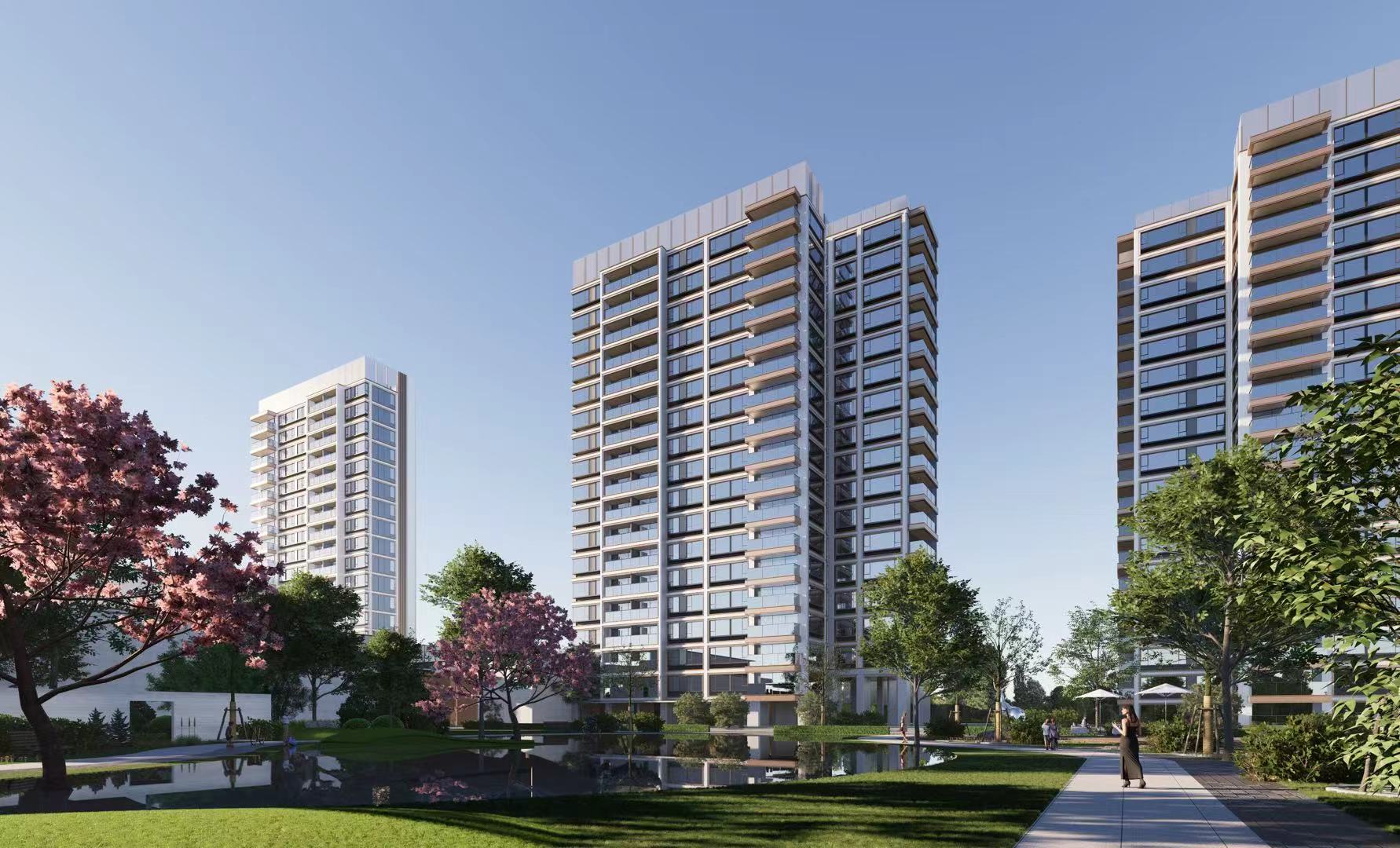 中国铁建·花语前湾项目位于上海闵行区,处于前湾正核,占地面积约6.5W㎡。项目打造开放式中央街区,约4000㎡公共街区,形成开放无界的城市会客厅,汇聚运动健身、教育拓观、儿童教育、社区食堂、老年社交等全龄化多元化功能,讲成为社区重要的时尚、社交、休闲聚场。现代几何建筑立面,去风格化公建化设计,将奢度化繁为简,凑响天际和鸣。